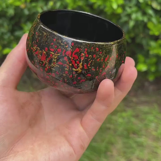 Handmade Lacquer Rohan Cup | Red-Black-Gold Xipi Texture | For Tea & Coffee