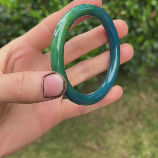 Jade-Green Lacquer Bangle | Mother-of-Pearl Fish Inlay | One-of-a-Kind Handmade